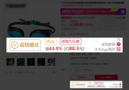 下载安装后,打开浏览器(查看支持的浏览器列表),商品详情页面出现返利信息,如下图